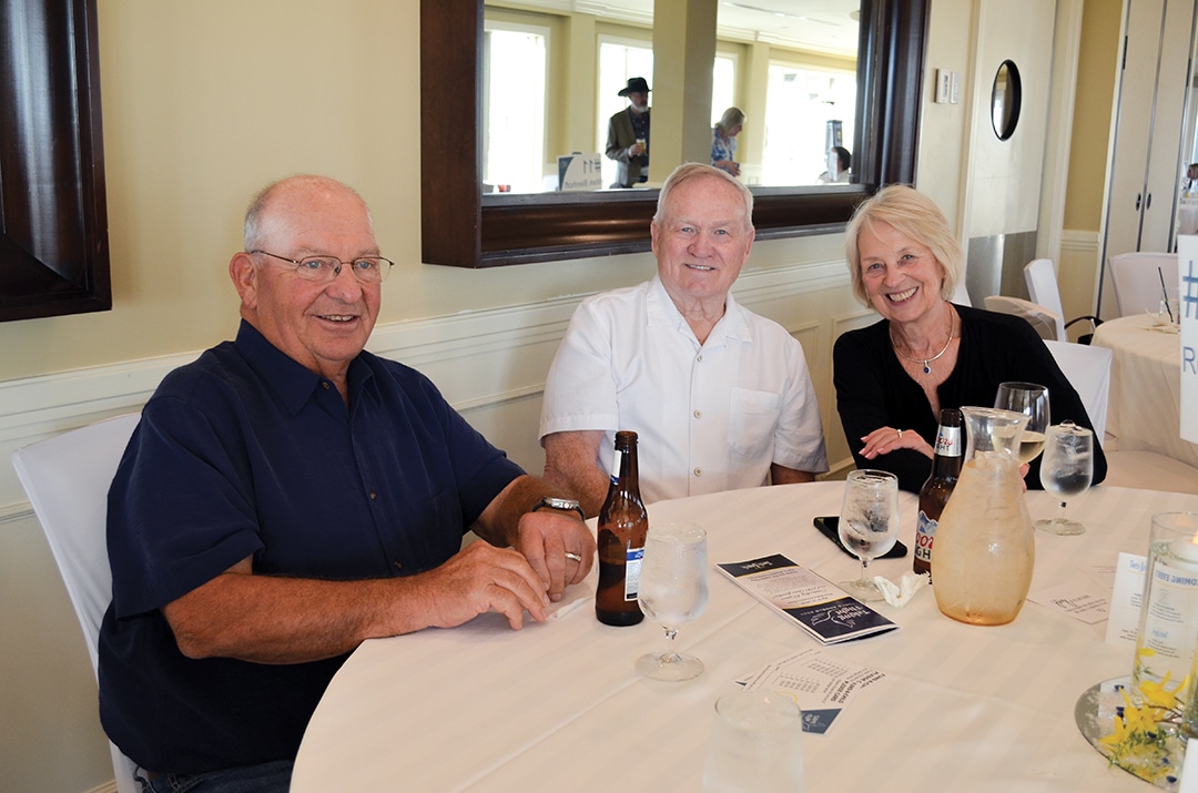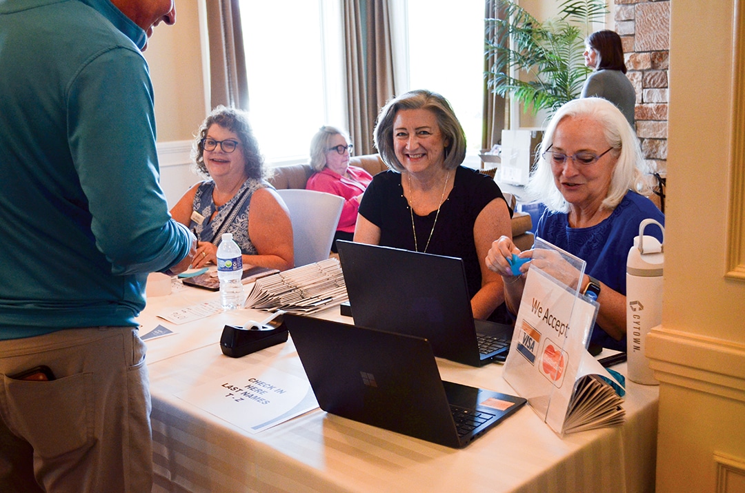 Kim Phillips, Des Moines, Patty Reeve, Panora, and Joanie Coates, Ankeny, greet guests as they arrive.