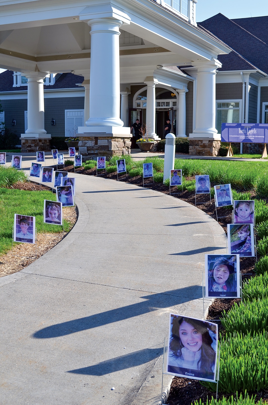 Photos of the Tori’s Angels children line the walkways leading up to the entrance to Glen Oaks Country Club.