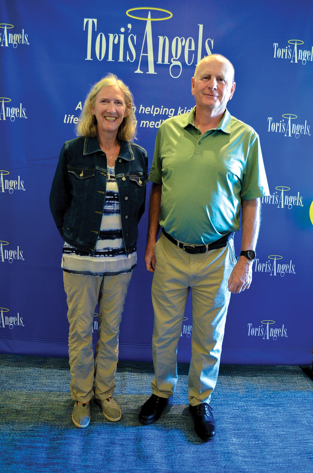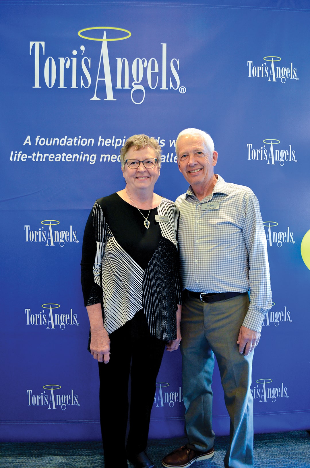 Terry and Mary Jane Sprague, Guthrie Center, pose at the Tori’s Angels banner.