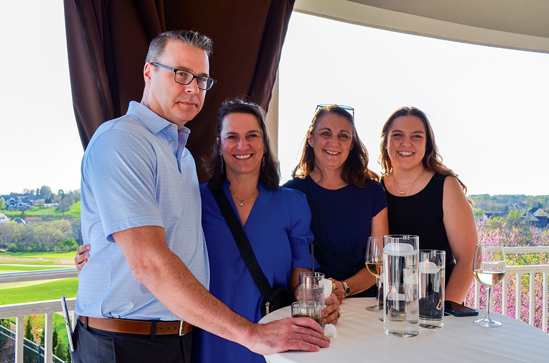 Shayne and Gail McGaughy, Des Moines, and Jenni Barp, Johnston and Lexi Barp, West Des Moines, on the deck at Glen Oaks.