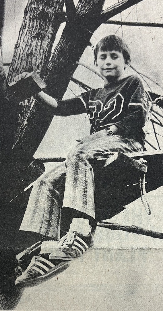 IT’S SPRING. Birds aren’t the only ones that build in trees in the spring. Craig Schultz, son of Mr. and Mrs. Dale Schultz, sits atop his roost in a favorite tree.