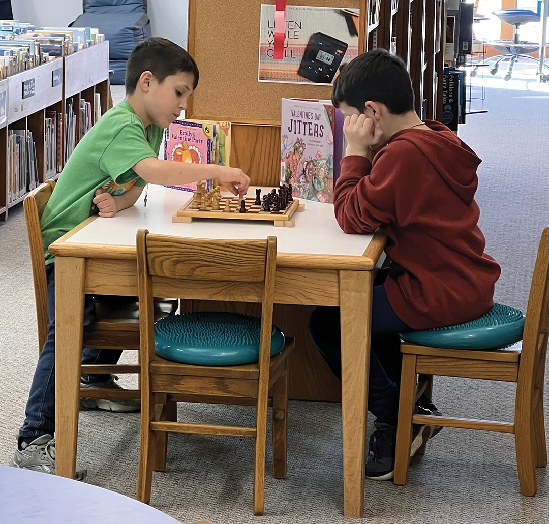 The library is a good place to hang out after school for a game of chess.