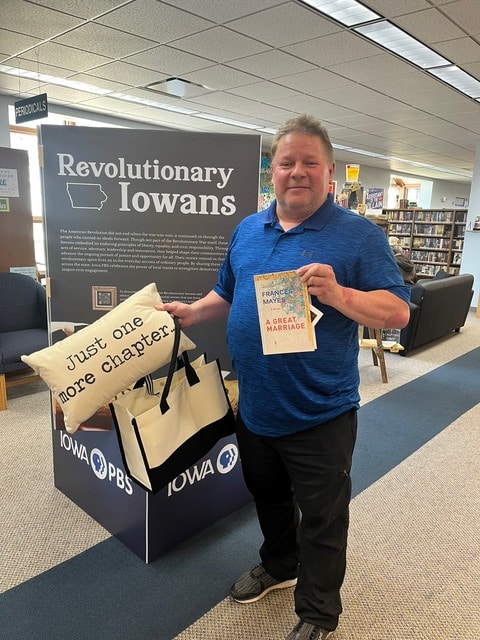 Rich Wicks shows off some of the prizes that were in the bag that he won from the drawing of Friends of the Guthrie Center Library membership drive. Friends are still accepting new members if anyone is interested in supporting the Friends of the Guthrie Center Library.