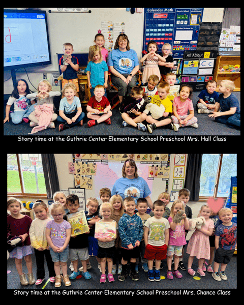 As part of the MJB Library’s outreach, someone from the library does story time with the Guthrie Center’s two elementary preschool classes. This month, library director Jerri Hawkins shared books that highlight finding your joy at the library. Additionally, she took puppets to share with the young patrons. Hawkins follows up by sending activity sheets for the children to complete later in the day.