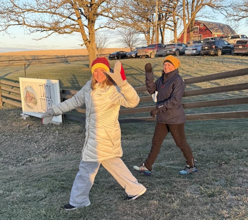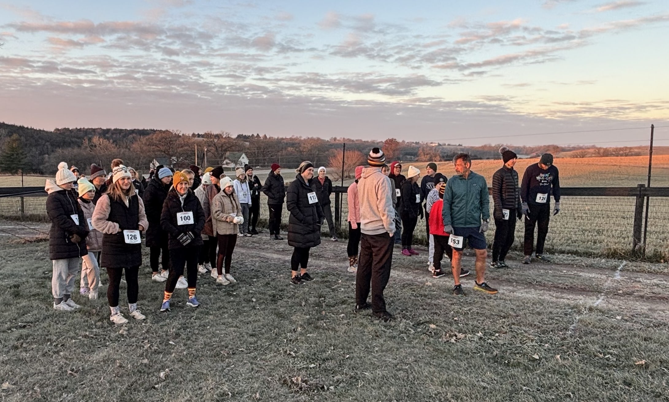 Thanksgiving Day dawned with frosty but sunny conditions (18 F) for the sixth annual Reshape Turkey Trot 3-mile run/walk at Twin Vines Winery. After finishing, participants gathered indoors for muffins, coffee and hot chocolate. A total of 58 participants were involved.
