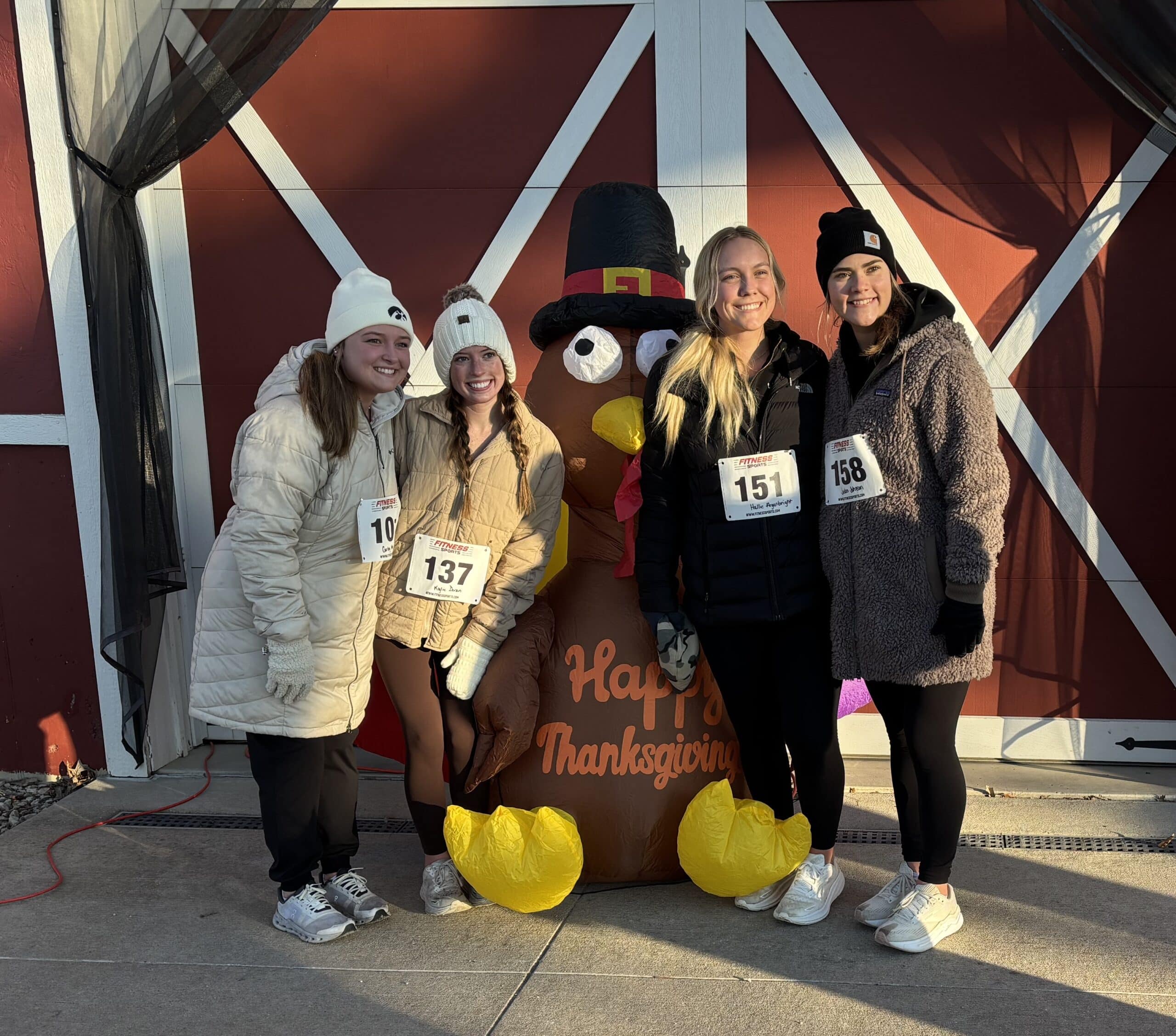 Carley Van Gundy, Kylie Doran, Hallie Arganbright and Jaden Johnson commemorate their completion of the Turkey Trot. Photo by Rich Wicks