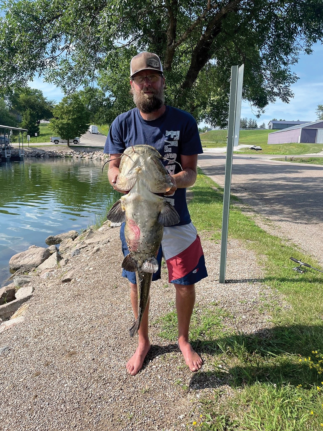Joe Gaynor and his son, Lucas, enjoy some friendly competition while fishing at Lake Panorama. Lucas Gaynor shows his big catch.