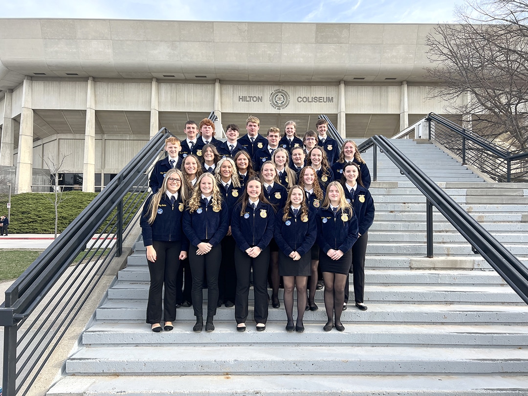 While members were competing in contests, the chapter also saw 14 members receive awards for their efforts and on behalf of the chapter over the weekend. Brexton Schneider was recognized for his state runner up Beef Production Placement proficiency application. Lilah Heinz was the SW District Rising Star finalist. Belle Fagan accepted the bronze rating for the National Chapter Award, and Camdyn Richter received the ambassador award on behalf of the chapter. Bryce Betts, Emmarae Ellis, Gracie Hodges, William Kading, Lucy Knutter, Chase Slaybaugh, Blaise Tallman, Tyler Thomas, Irelyn Wirt and Casey Young received their Iowa FFA Degrees.