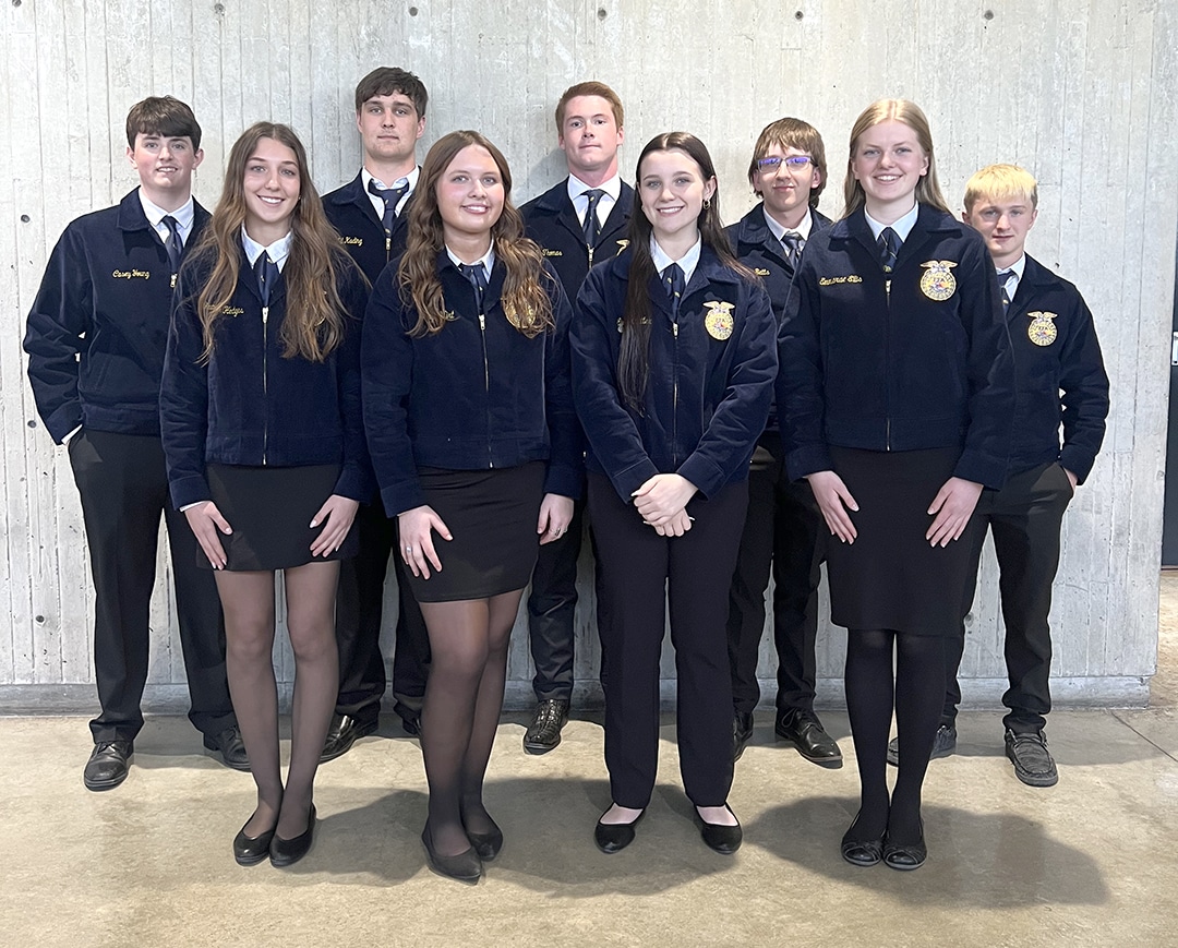 This year, the chapter saw 13 members participate in different contest areas. Garrett Lemke, Carter Richter and Jack Sheeder participated in poultry evaluation and received a bronze rating while Irelyn Wirt, Miranda Gruber, Gracie Hodges and Ava Sneller participated in the Farm Business Management contest and received a silver rating. Nora Langgaard took the Chapter Knowledge Quiz and received a gold rating, respectively.