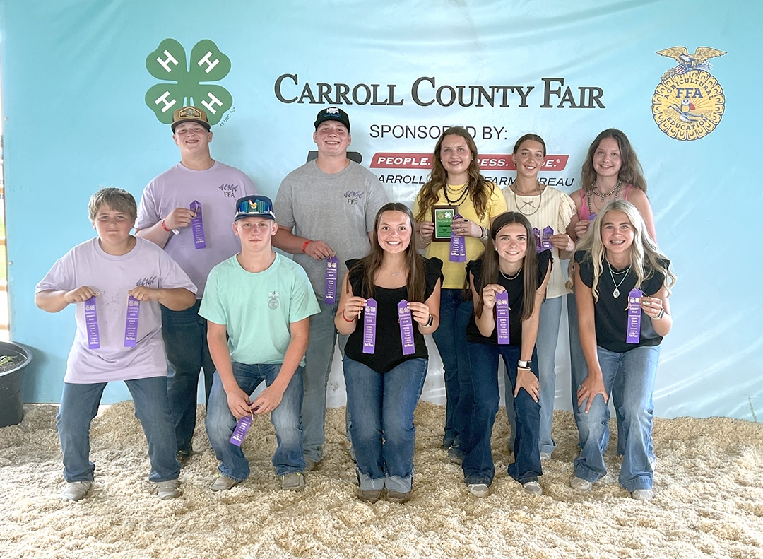 Over the past month, 13 ACGC FFA members traveled around southwest Iowa to participate in various livestock judging events at local county fairs. On July 10, Carroll County held its contest where 10 ACGC FFA members competed on three different teams. Team one of Rylee Robson, Irelyn Wirt, Cash Suhr and Gracie Hodges placed first overall as a team. The second team of Imersyn Wirt, Taryn Carroll and Alli Wiers placed seventh overall, and the third team of Creighton Suhr, Jaxen Knobbe and Logan Stringer placed sixth overall. From these teams, Robson placed second individually, Knobbe placed third, Hodges placed fifth, and Wirt placed eighth overall.