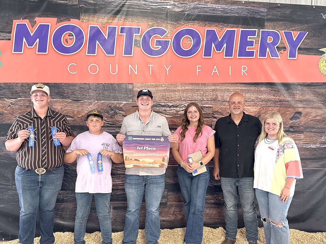 On July 17, Cash Suhr, Creighton Suhr, Jaxen Knobbe and Irelyn Wirt traveled to the Montgomery County Fair and won the contest as a team with Cash placing first, Creighton placing second, Irelyn placing 11th, and Jaxen placing 12th individually.