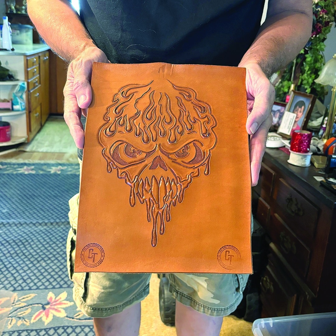 “I’m not an artist. I’m a leather artist, and I can tool, but when it comes to drawing, give it up. My stick people even look bad,” Craig said. “So, we make a stencil, and then I’ll cut everything in and tool it out.”