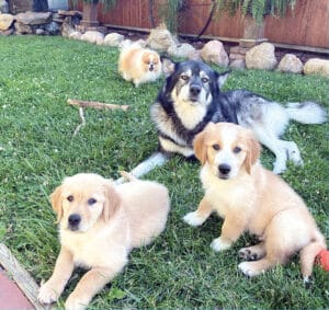 “We didn’t have her fixed right away,” James said. “In the fall of 2020, one of our neighbor’s dogs snuck into our yard and got Kiera pregnant. She had 10 puppies, and they all survived.”