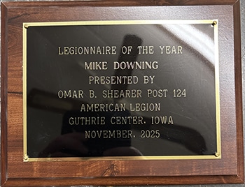 “I am proud of my service to this great country but was glad to be a civilian again,” Downing said. “I want to thank the Legion Post for the Honorary Life Member award that they gave me last year. I really appreciate it. Again, thank you for the honor to be chosen Legionnaire of the Year.”