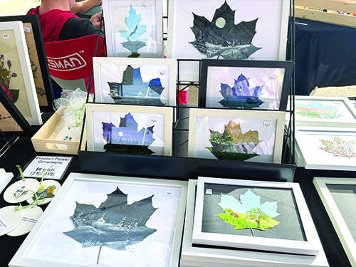 Shirley Konz’s leaf art is popular at vendor fairs.