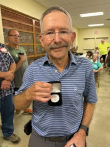 Bill Eby won the Silver Dollars donated by Farmers State Bank.