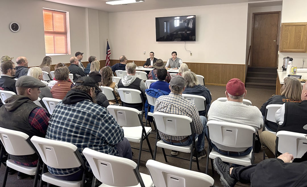 On the morning of Saturday, Feb. 28, two Iowa legislators met with local citizens at the Farm Bureau building in Guthrie Center. Approximately 45 local citizens were in attendance, including local elected officials and law enforcement personnel. District 24 State Senator Jesse Green and 47th District State Representative Carter Nordman fielded questions on a wide variety of topics, including private schools/vouchers, transgender rights, water quality and eminent domain/pipeline concerns.