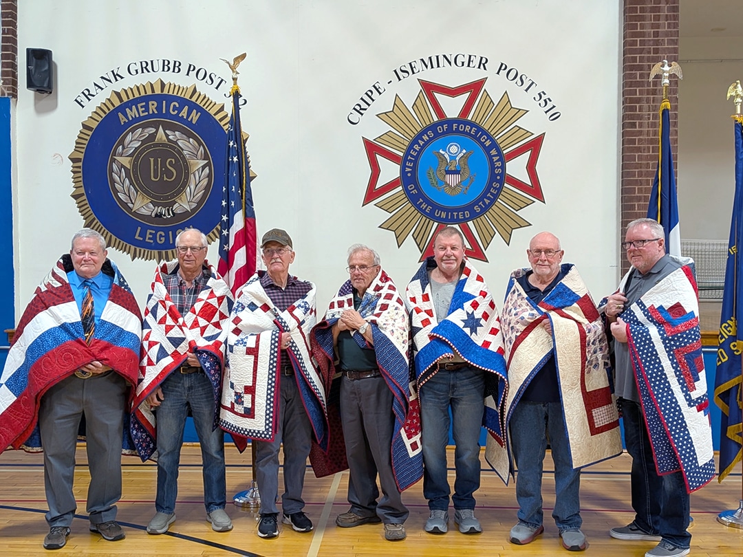 Seven local veterans were honored for their service on Saturday at Veterans Auditorium in Panora. Each received a Quilt of Valor, a handmade quilt specifically designed to honor and provide comfort to service members and veterans who have been affected by war. The Quilts of Valor Foundation (QOVF) was established in 2003 with the mission to cover these individuals with comforting and healing quilts.