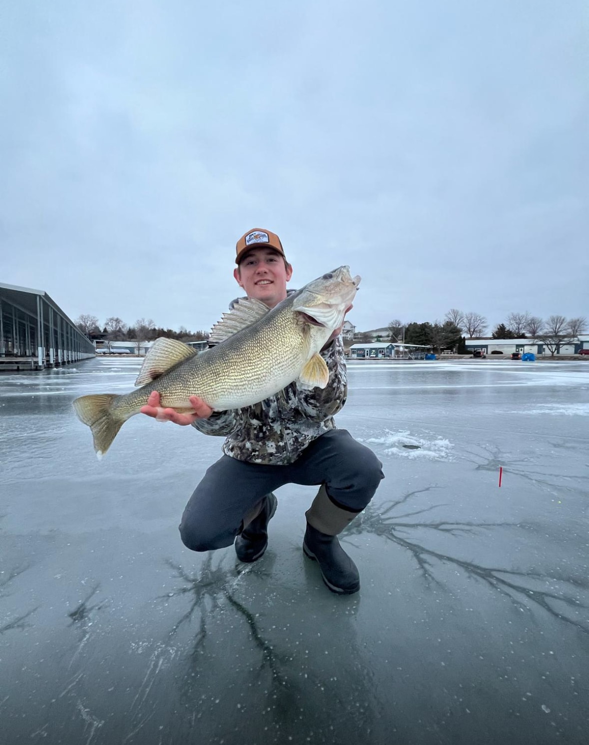 Jerry Patterson, who resides in Helen’s Cove at Lake Panorama, pulled this monster walleye through the ice by the marina this past weekend.