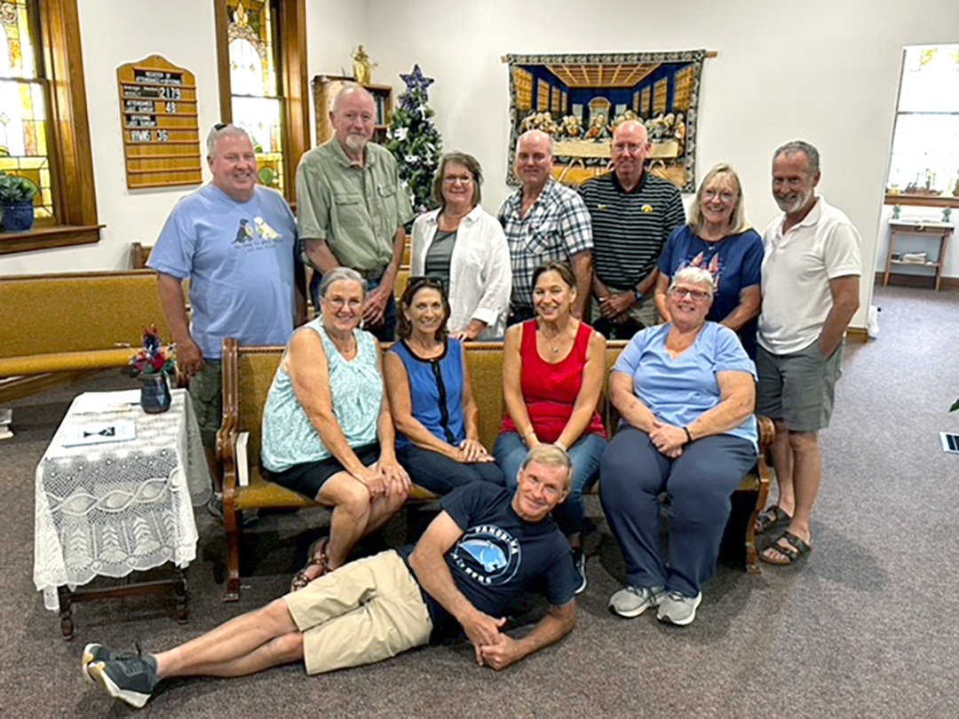 The Panora Linden class of 1975 celebrated its 50-year reunion recently. Pictured are, back row: Jerry Gallatin, Gary Smith, Janet (Barks) O’brien, Tom Glade, Tom Ferree, Nancy (Bennink) Lemke and Greg Arganbright. Second row: Sharyl (Ulrich) Traylor, Melanie (Hotle) Eckert, Karla (Hansen) VanWinkle and Ilene (Adair) Olson. Front row: Dave Arganbright. Attended but not pictured: Bruce Parker and Gloria (Shelley) Keltner.