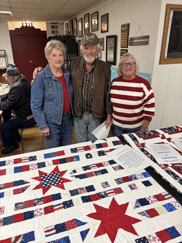 Members of the Perry Iowa Piecemaker Quilts of Valor presented at the Guthrie Center American Legion Chili and Oyster Stew Dinner on Tuesday at the Legion Hall in Guthrie Center