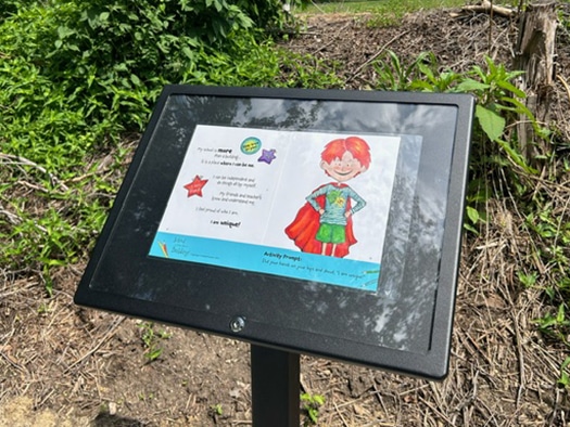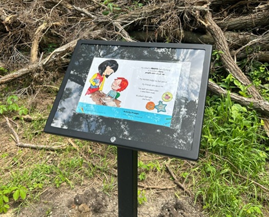 The StoryWalk grand opening event will be held Tuesday, Aug. 19 at 6 p.m. at Raccoon River Valley Trail by Pedal-In. Free ice cream will be offered, sponsored by Bendickson Works. Pictured are Kristie Reynolds, Deb Rockwell and Allison Halsey, who were adding book pages to bike trail Story Walk on Thursday.