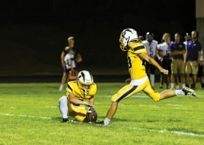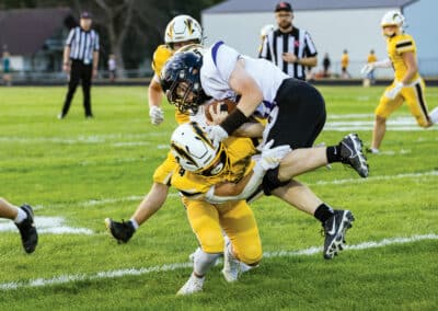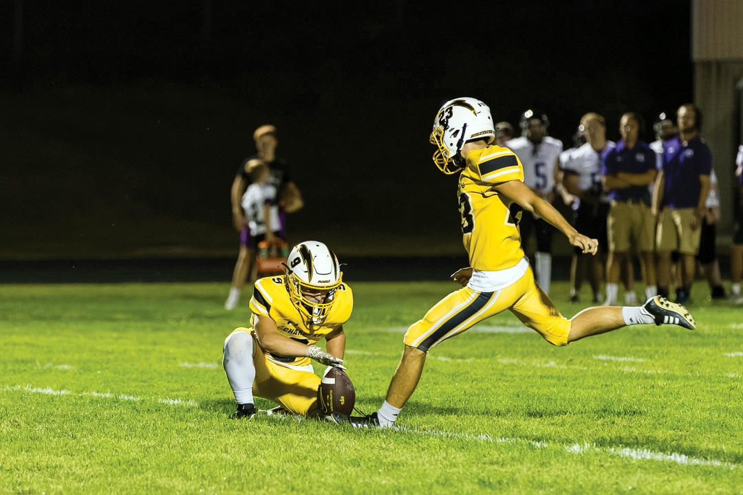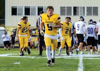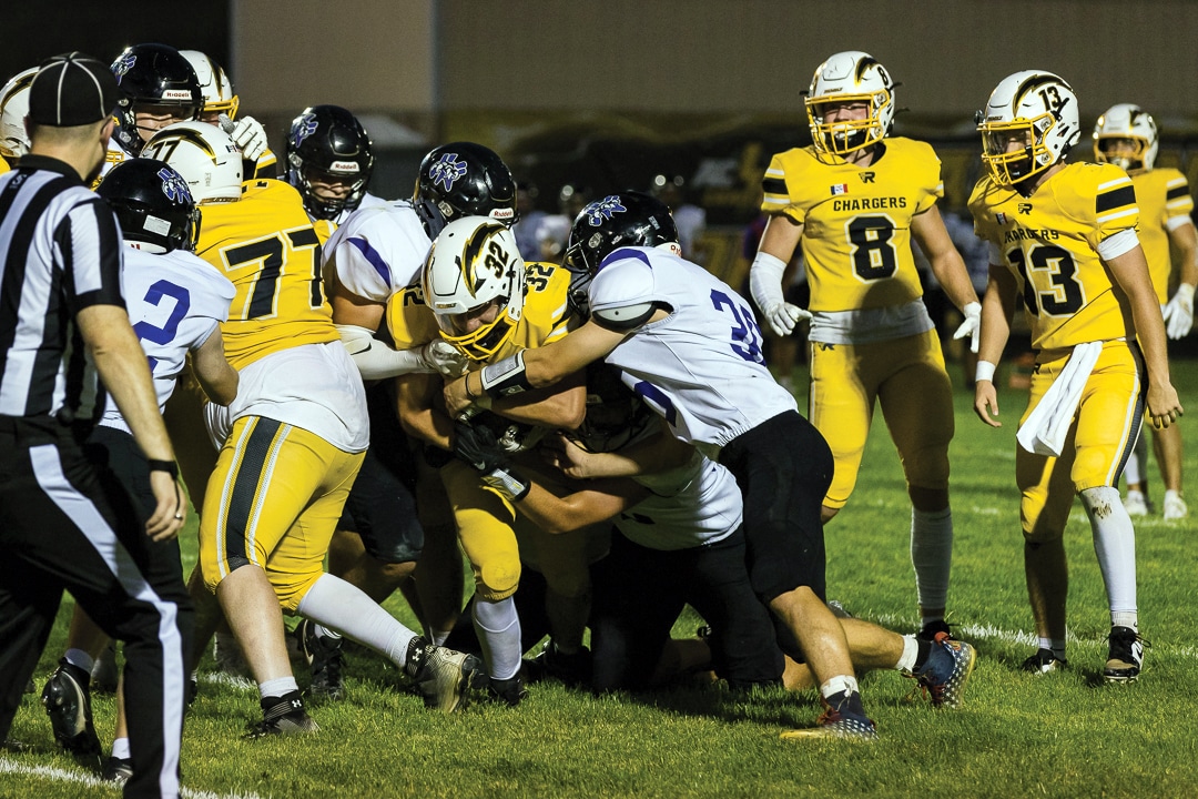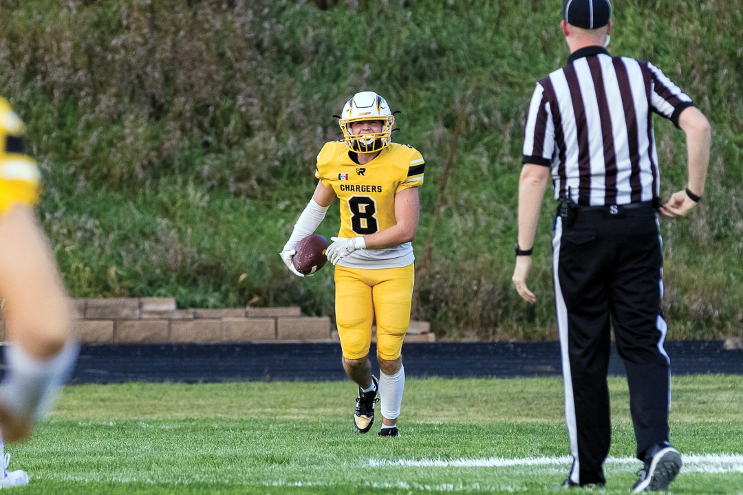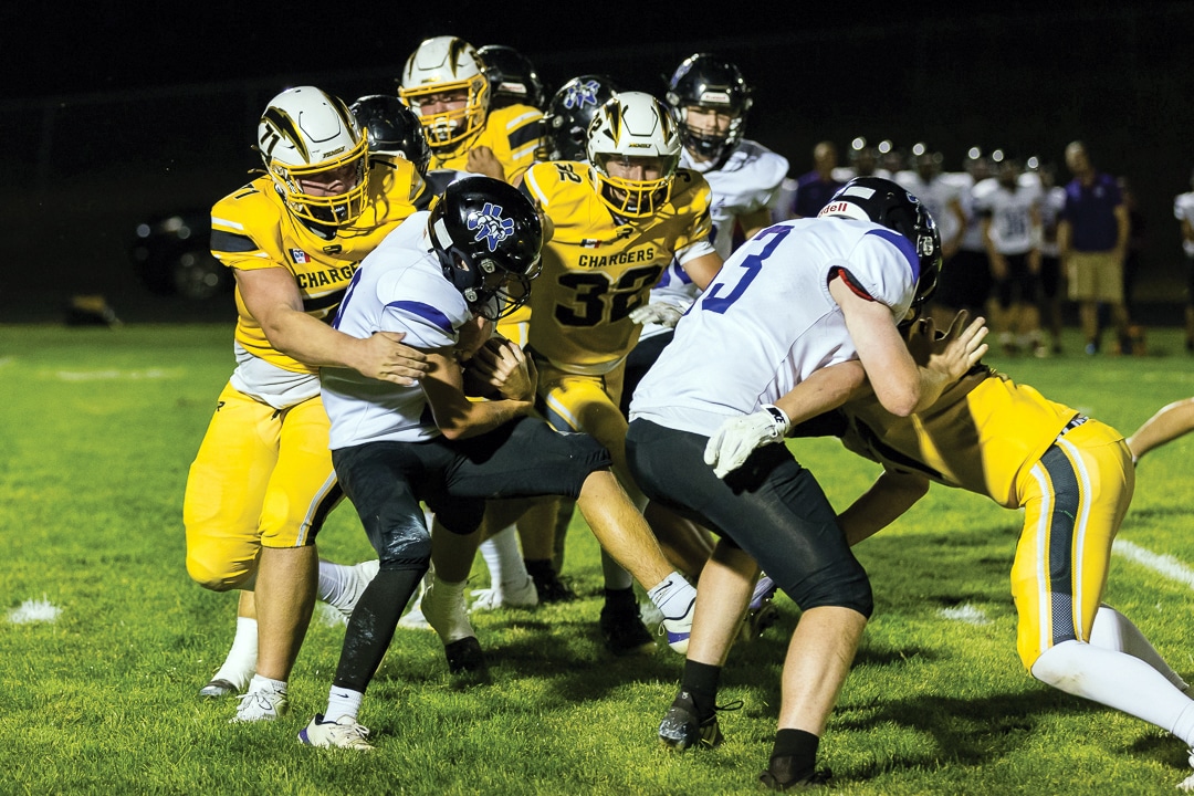 No. 4 ACGC (3-0) added another blowout victory to its resume after defeating Nodaway Valley (1-2) at home on Friday, Sept. 12. Thomas Skram threw the Chargers only pass for 18 yards and a score to Joe Crawford. Ten different Chargers recorded rushing attempts, and six different players reached pay dirt. Crawford led with five carries for 111 yards and one TD. Lane Stringer had the most carries with 12 for 81 yards. Ryder Cline, Andrew Baumert, Brexton Schneider, Thomas Skram and Jack Sheeder all scored rushing touchdowns. Kade Sorensen led in tackles with 5.5, one sack and two tackles for loss. Schneider had two interceptions; Xander Harwood had one. Crawford’s impressive three-touchdown performance included a punt return for a TD.