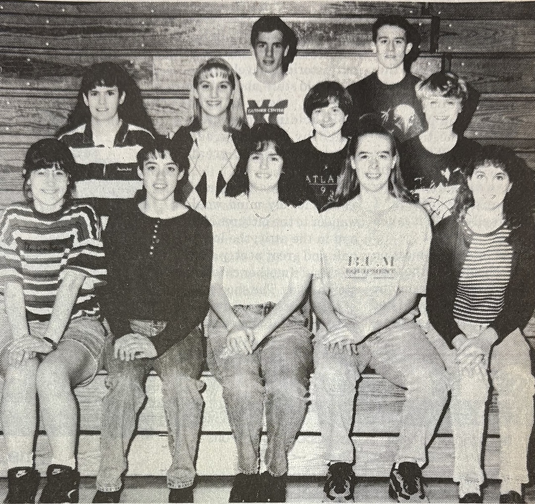 HONORED INDUCTEES. The following Guthrie Center High School juniors have been inducted into the Jean E. Safley Chapter of the National Honor Society: (front) Jamie Bosier, Julie Vandevanter, Abby Snyder, Katy Lewis and Jessica Millhollin, (middle) Kris Stringham, Becky Willenborg, Maria Feilmeyer and Erica Brown, (back) Tim Hunt and Alfred Wessling.